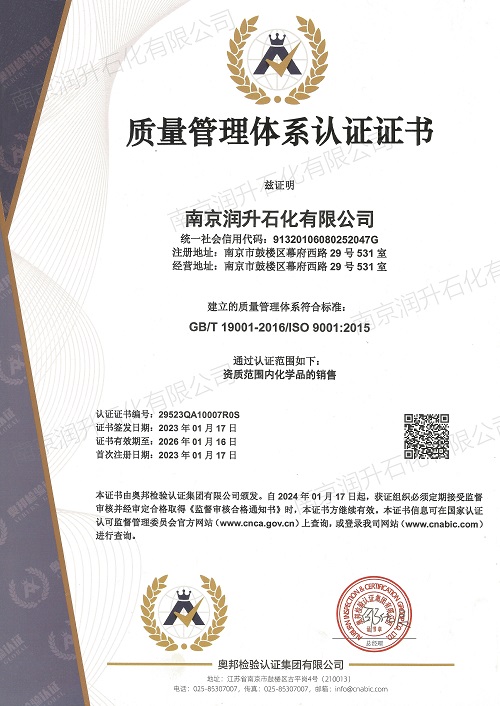 甲苯,丙酮,丁酮,四氫呋喃,三氯甲烷等產(chǎn)品ISO9001質(zhì)量體系認(rèn)證書(shū)